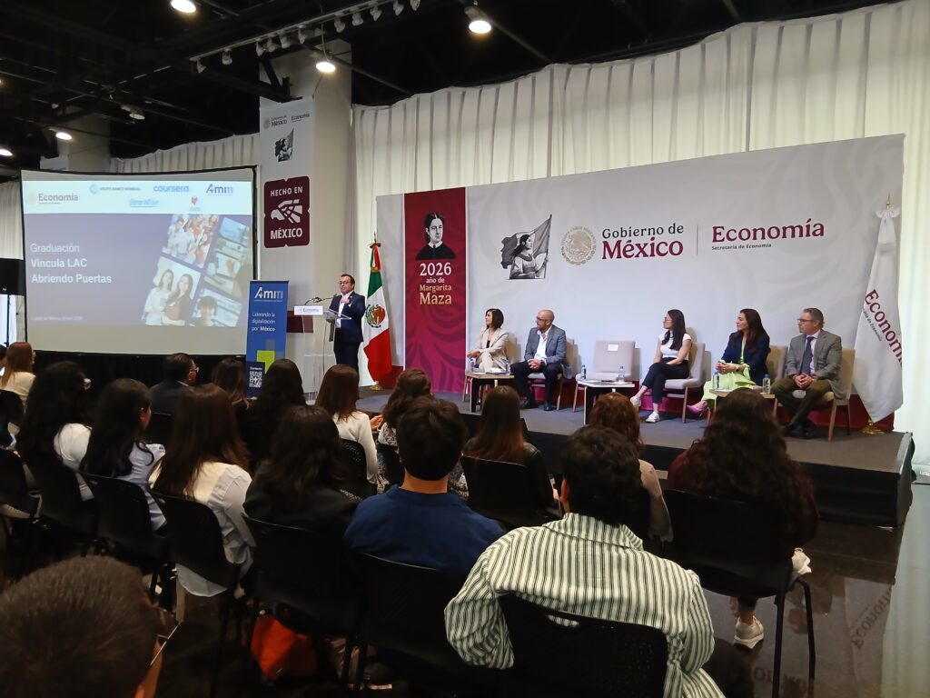 En una ceremonia celebrada en la Secretaría de Economía, se llevó a cabo la graduación de los programas Vincula LAC y Abriendo Puertas de AMITI. El evento reunió a líderes de organismos internacionales, autoridades gubernamentales y representantes de la industria tecnológica para reconocer a los jóvenes que han fortalecido sus competencias digitales y habilidades blandas para el mercado laboral actual.